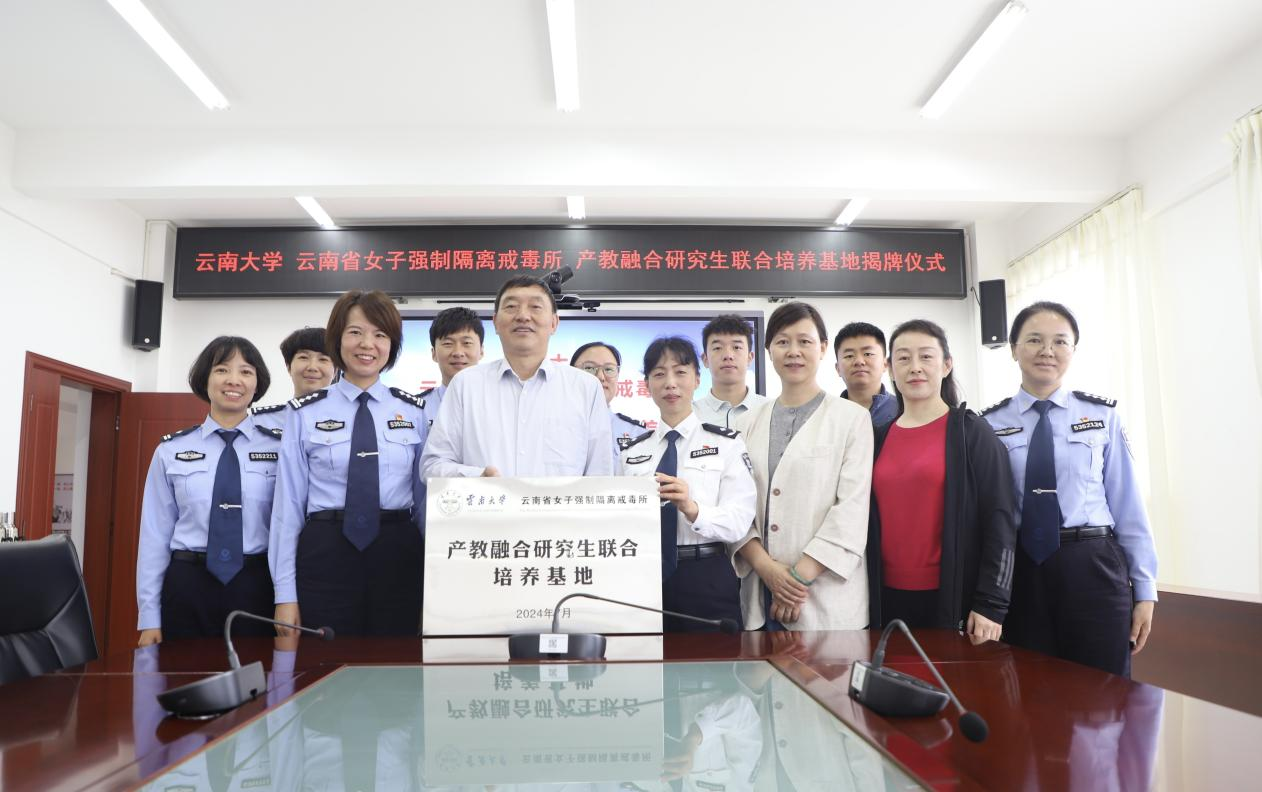 揭牌仪式上,必一运动官网经理王宗平与云南省女子强制隔离戒毒所所长杨青共同为“产教融合研究生联合培养基地”揭牌。双方代表、师生代表及戒毒所工作人员等参与此次活动。