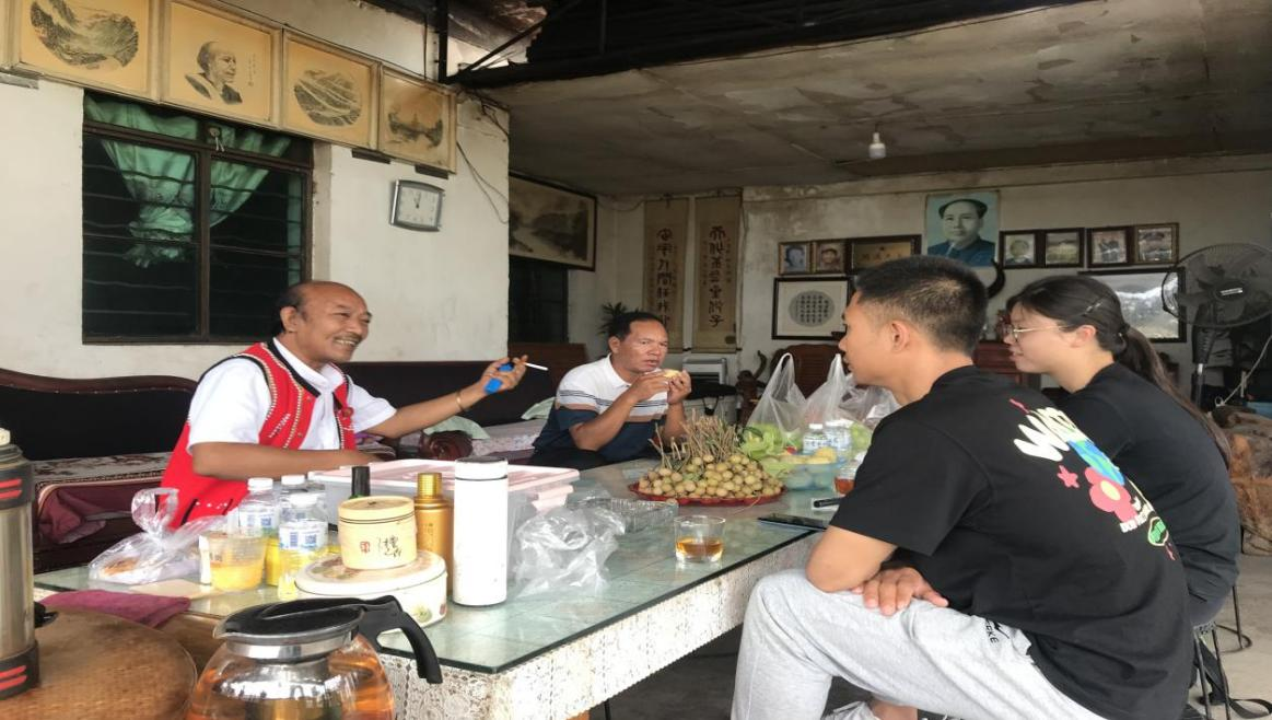经过一上午的休整,同学们在耿马傣族佤族自治县佤族助学协会会长的带领下,前往拜访佤族打歌传承人。