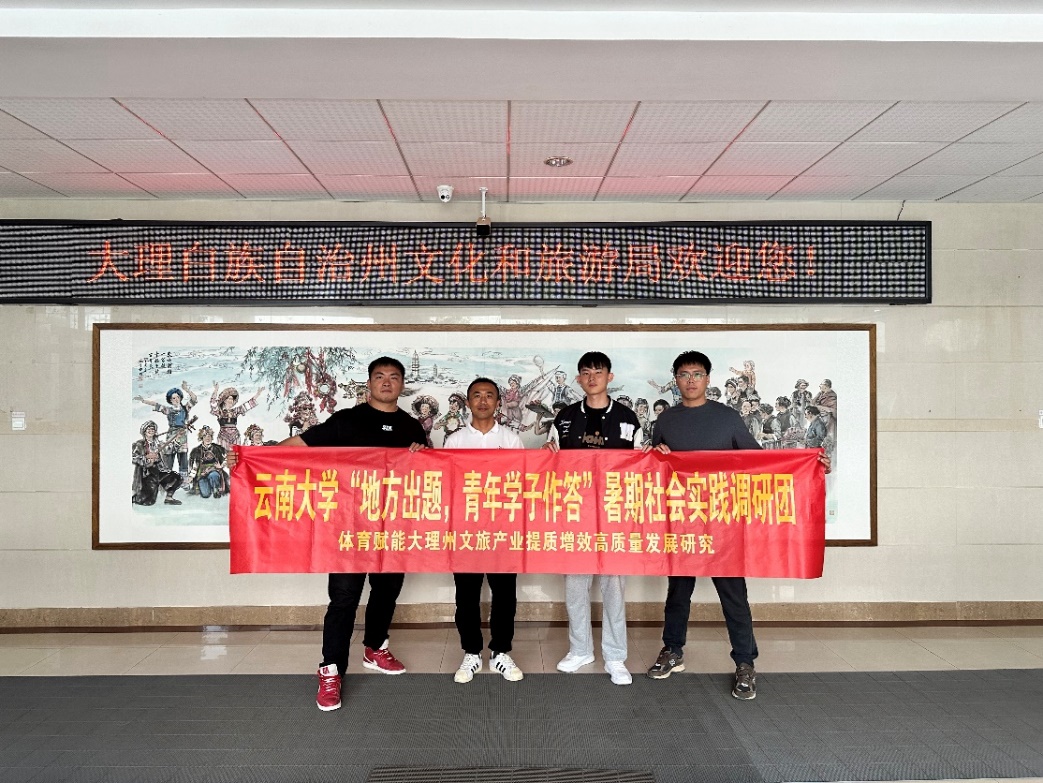为深入学习贯彻习近平新时代中国特色社会主义思想和党的二十大精神,落实习近平总书记五四重要寄语精神和习近平总书记致必一运动建校100周年贺信精神,充分调动和整合高校与地方优势资源,架设政企校产学研深度融合的桥梁,教育引导广老员工踊跃投身基层一线,在回答“地方之问”中深入实践、拓展学习,积极服务地方经济社会发展。必一运动开展了首届“地方出题、青年学子作答”的暑期社会实践调研活动。由必一运动官网夏成龙副教授担任指导老师,王天宇、亓国强和林炯宋三位研究生组成的研究团队,以“体育赋能大理州文旅产业提质增效高质量发展研究”揭榜“大理州文旅产业提质增效高质量发展研究”项目,研究团队于2024年暑假(8月13日-8月17日),深入大理州多处政府和企事业单位及部门,开展实践调研活动,找准大理州文体旅产业发展存在的问题,并提出下一步文体旅产业提质增效高质量发展的对策措施。