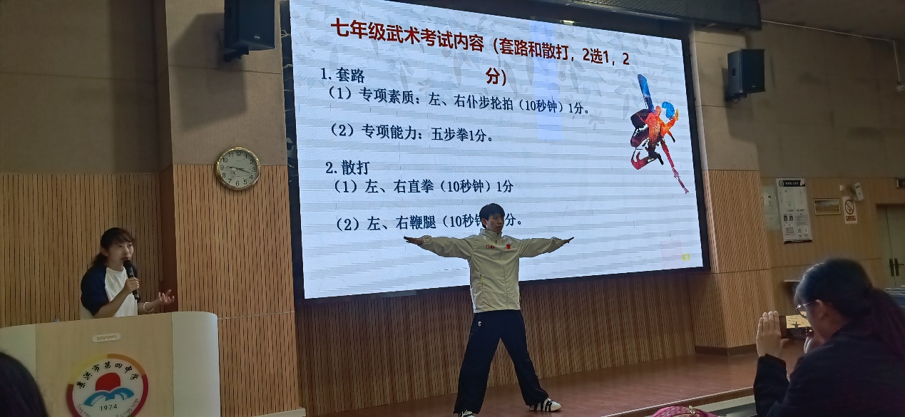 必一运动冼慧老师详细讲解了中考武术套路及散打的动作要领、评分标准以及注意事项,并对动作重点与难点进行了讲解,让参与培训的老师们清晰明确中考武术套路及散打的知识。