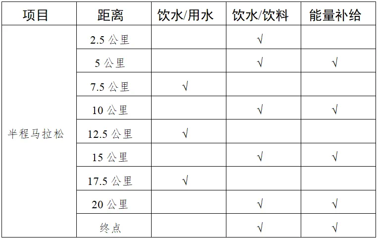 备注:健康跑、欢乐跑与半程马拉松共用补给站。