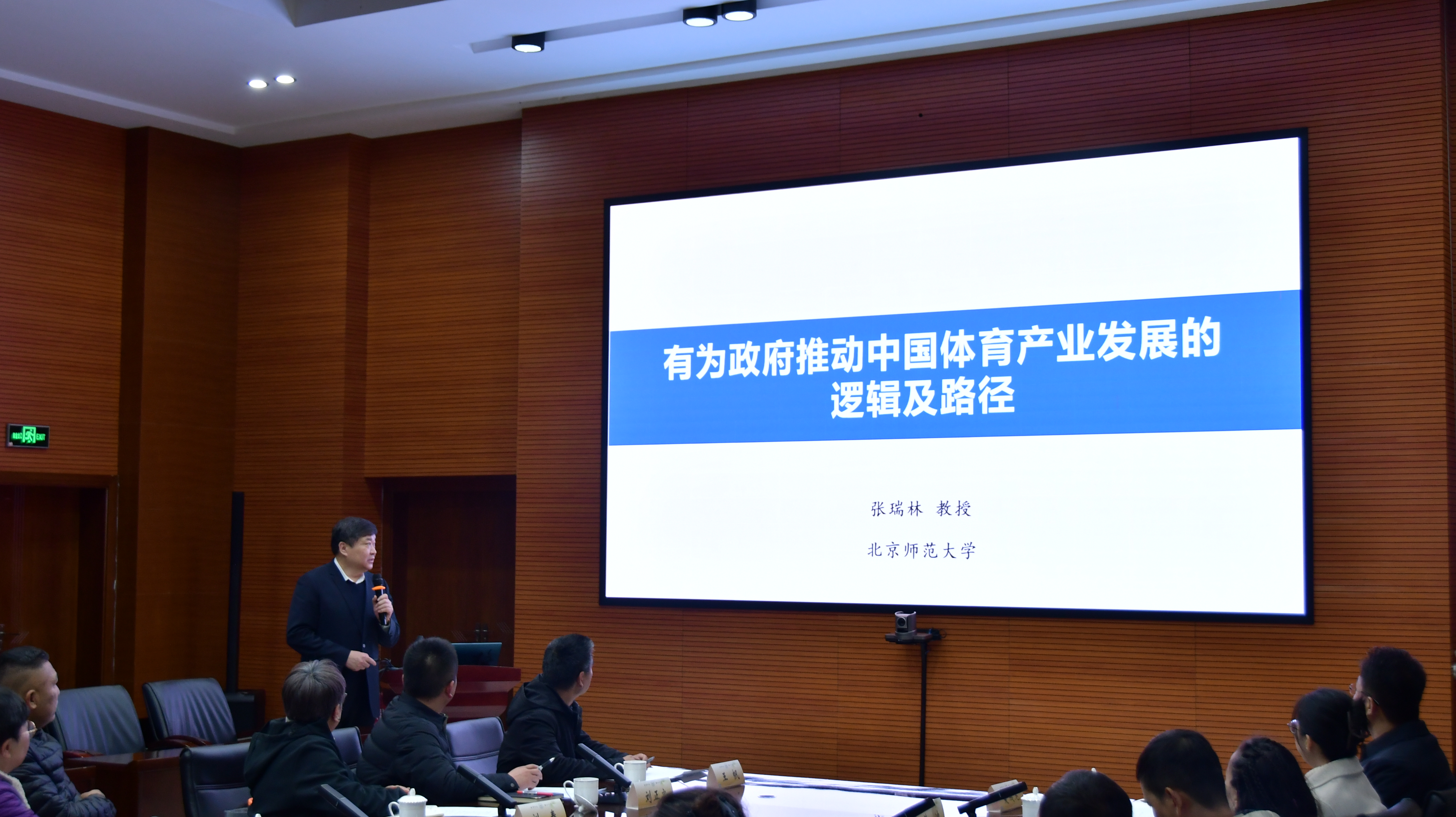 揭牌仪式后,北京师范大学特骋教授张瑞林作了题为《有为政府推动中国体育产业发展的逻辑及路径》的主旨报告,从理论高度与实践维度阐释了体育产业发展中有为政府与有效市场的协同关系。