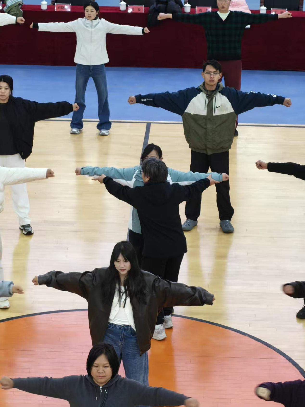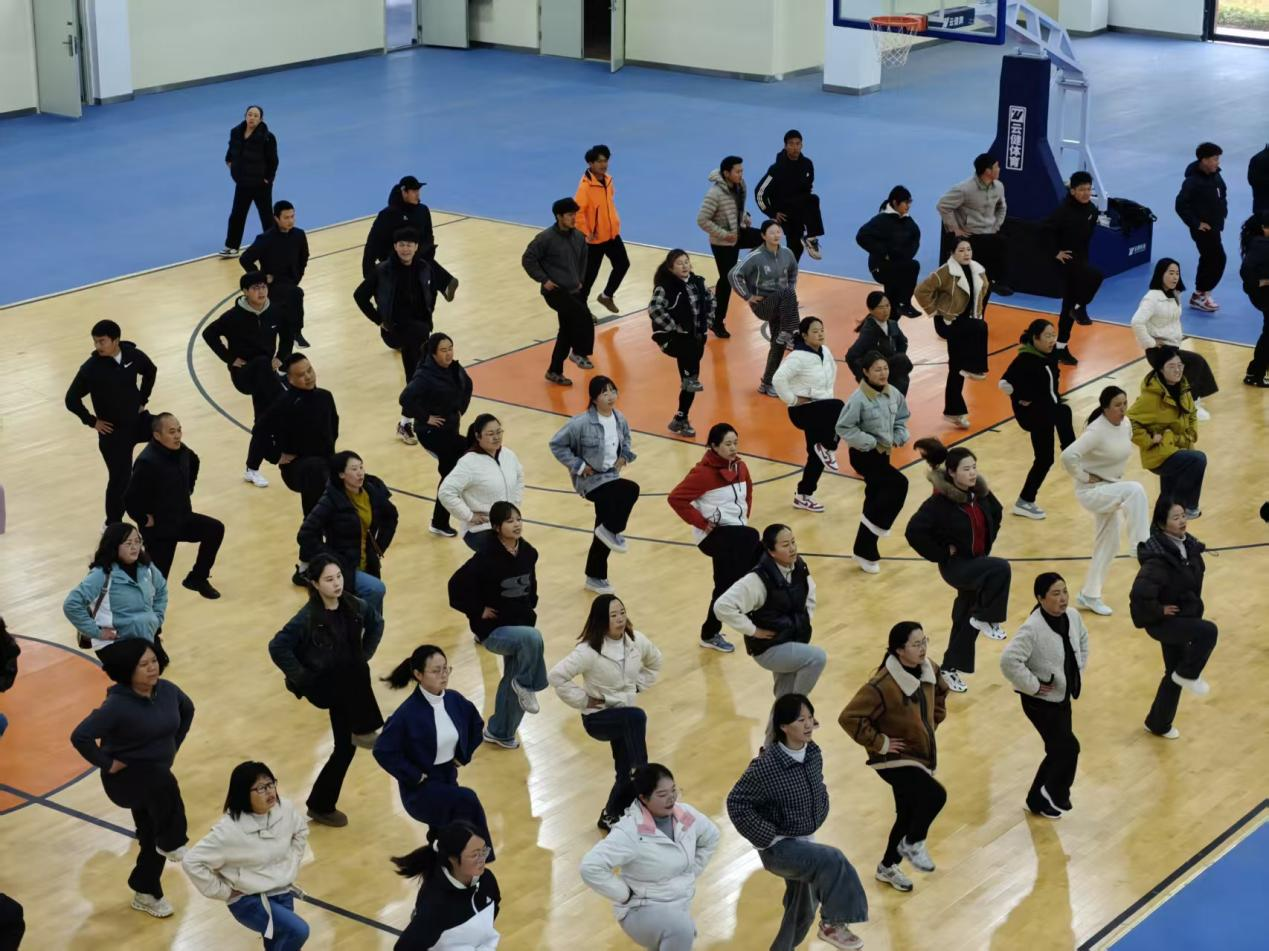培训期间,全体参训教师始终保持饱满的学习热情和严谨的学习态度,从基础动作的反复打磨到成套动作的协同配合,全身心投入每一次练习。经过集中强化培训,全体教师均熟练掌握了核心内容。在最终的成果展示环节,10个小组依次登台,以整齐划一的动作、活力四射的姿态、昂扬向上的精神风貌,完美呈现了培训成果,充分展现了鲁甸县bsports必一体育教师队伍的专业素养与风采。