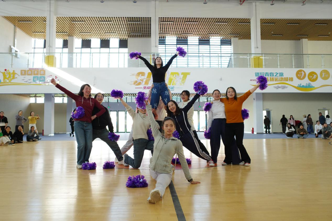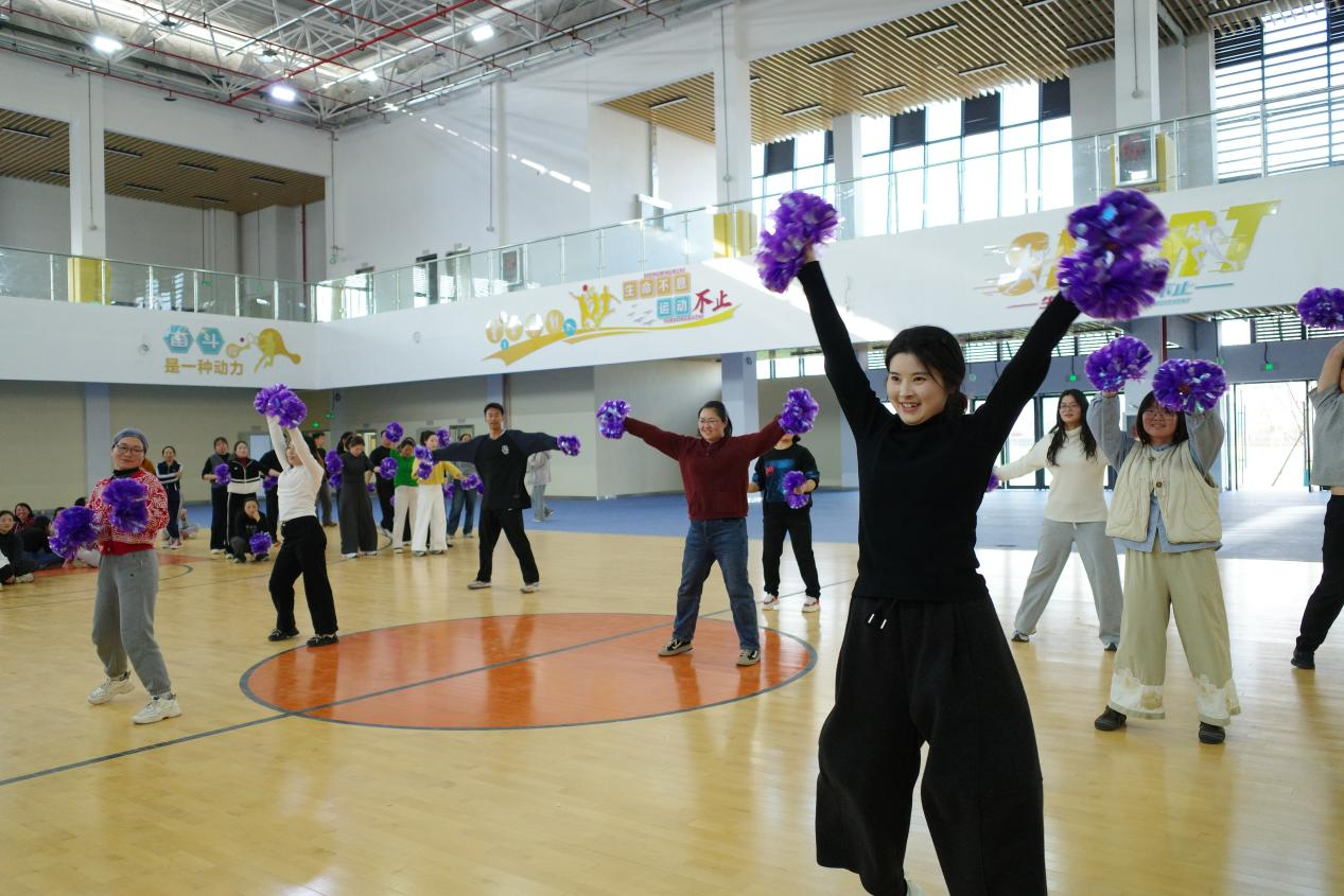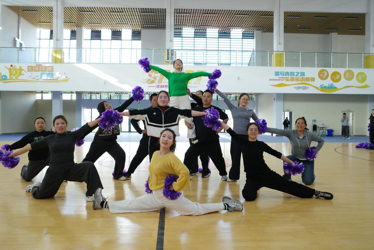 理论教学环节,授课团队围绕啦啦操项目发展历程、创编逻辑、竞赛规则解读及健身操舞的校园融创应用等内容进行深度讲解,帮助参训教师构建完整的理论知识体系,破解教学中的难点与痛点,实现从“会跳”到“会教、会编”的能力提升。实操教学环节,团队从啦啦操核心基础入手,系统讲授36个标准基本手位、核心步伐及规范的身体姿态训练方法;针对校园教学高频场景,重点拆解花球啦啦操完整套路、技巧啦啦操托举与配合动作的教学要点。