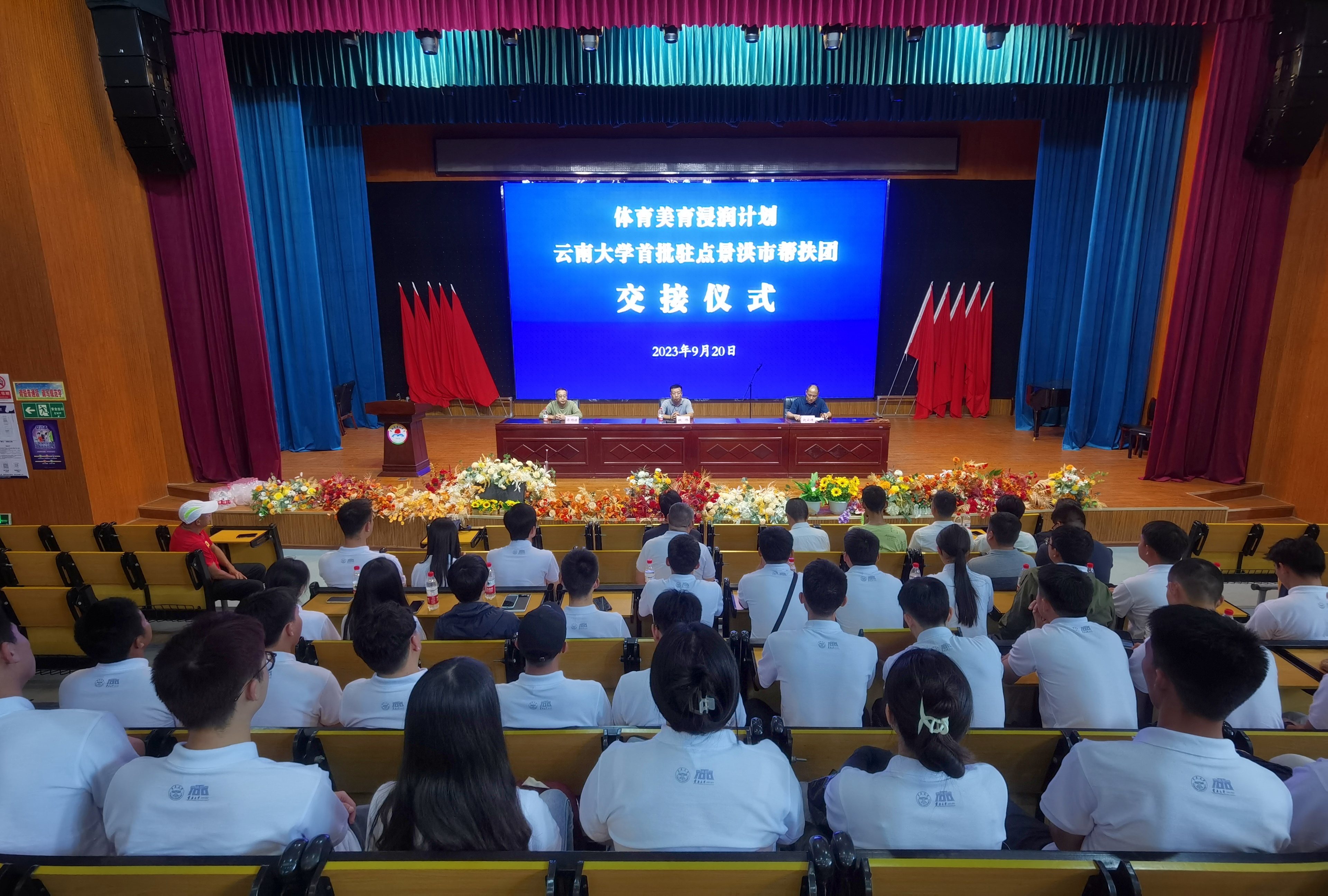 2023年9月20日,必一运动首批赴景洪市开展体育美育浸润行动计划驻点帮扶师生团出征仪式在呈贡校区举行。