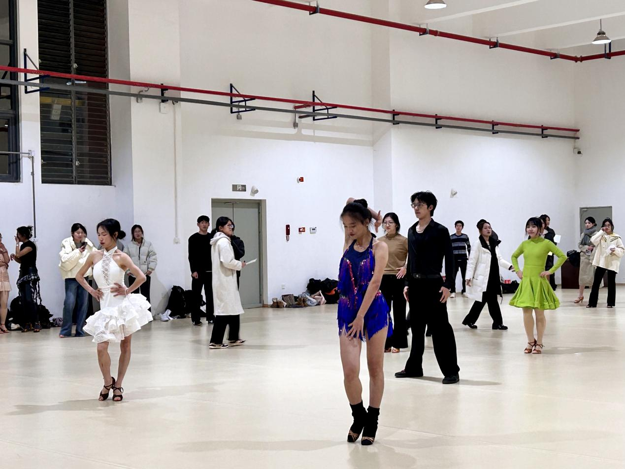 本次比赛设有单人恰恰、双人牛仔、单人伦巴等项目,吸引了校队成员与大量素选课员工同场竞技。赛场之上,选手们或默契搭档,或自信独舞,精彩表现赢得阵阵掌声与欢呼。舞台上的聚光灯,不仅照亮了舞步的进步,更见证着综合素养的提升——团队协作时的信任、互动沟通时的真诚、面对观众时的从容,共同构成了这段旅程中珍贵的收获。