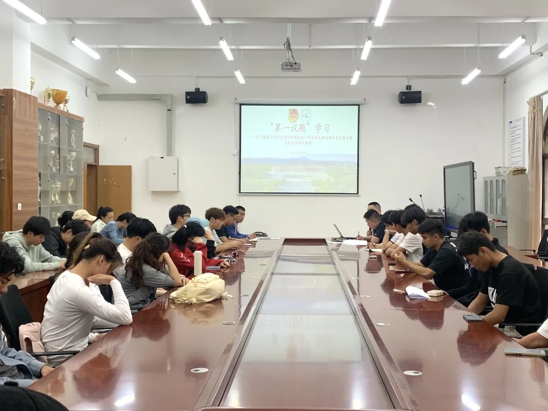 会议开始,孟令飞老师带领全体参会人员开展“第一议题”学习,共同学习习近平总书记给谢依特小学戍边支教西部计划志愿者服务队队员重要回信精神。随后对近期学院团学工作进行了安排和布置。