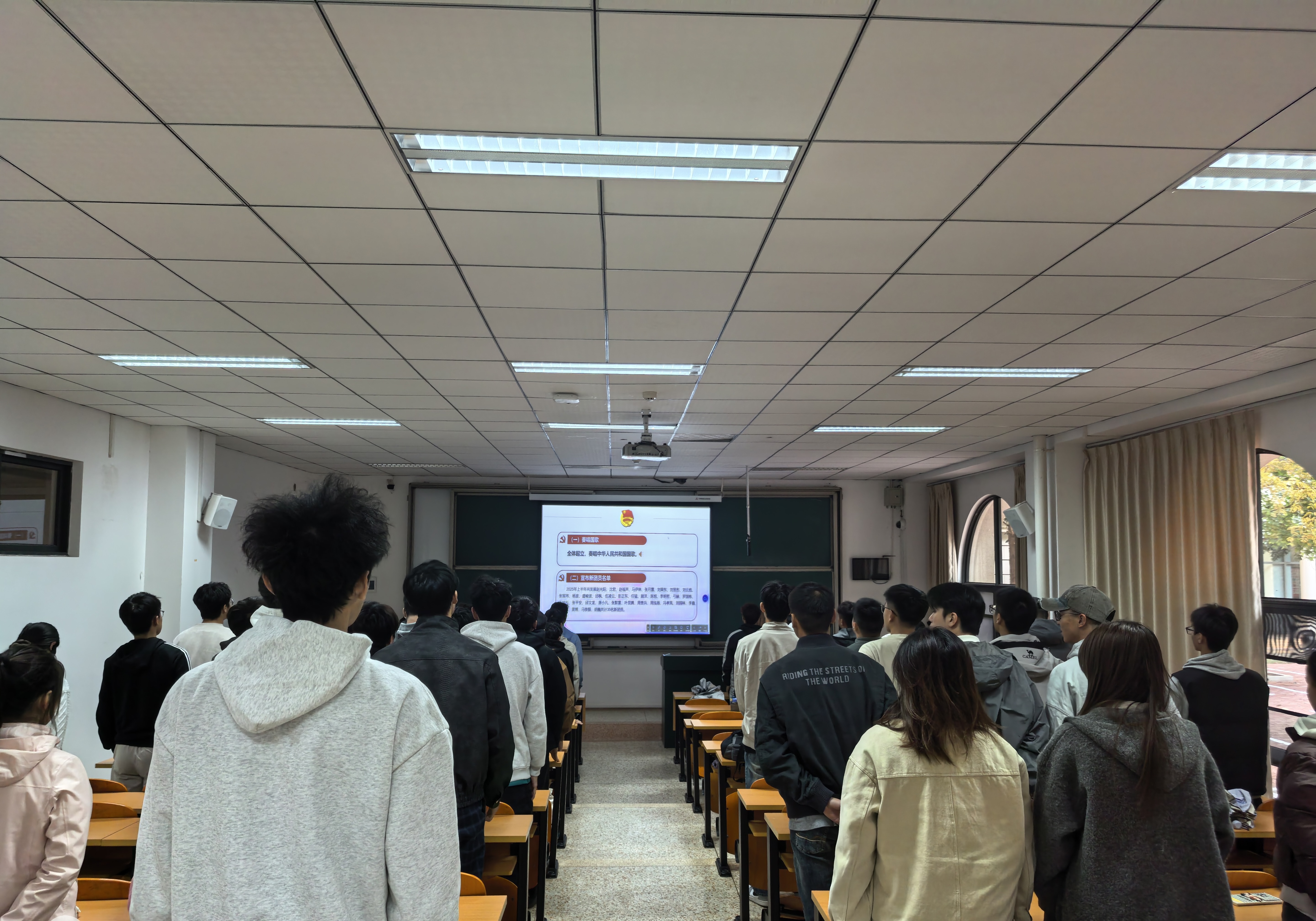一、新发展团员入团仪式,依次进行奏唱国歌、宣布新团员名单、佩戴团徽宣誓、寄语新团员及奏唱团歌等议程;