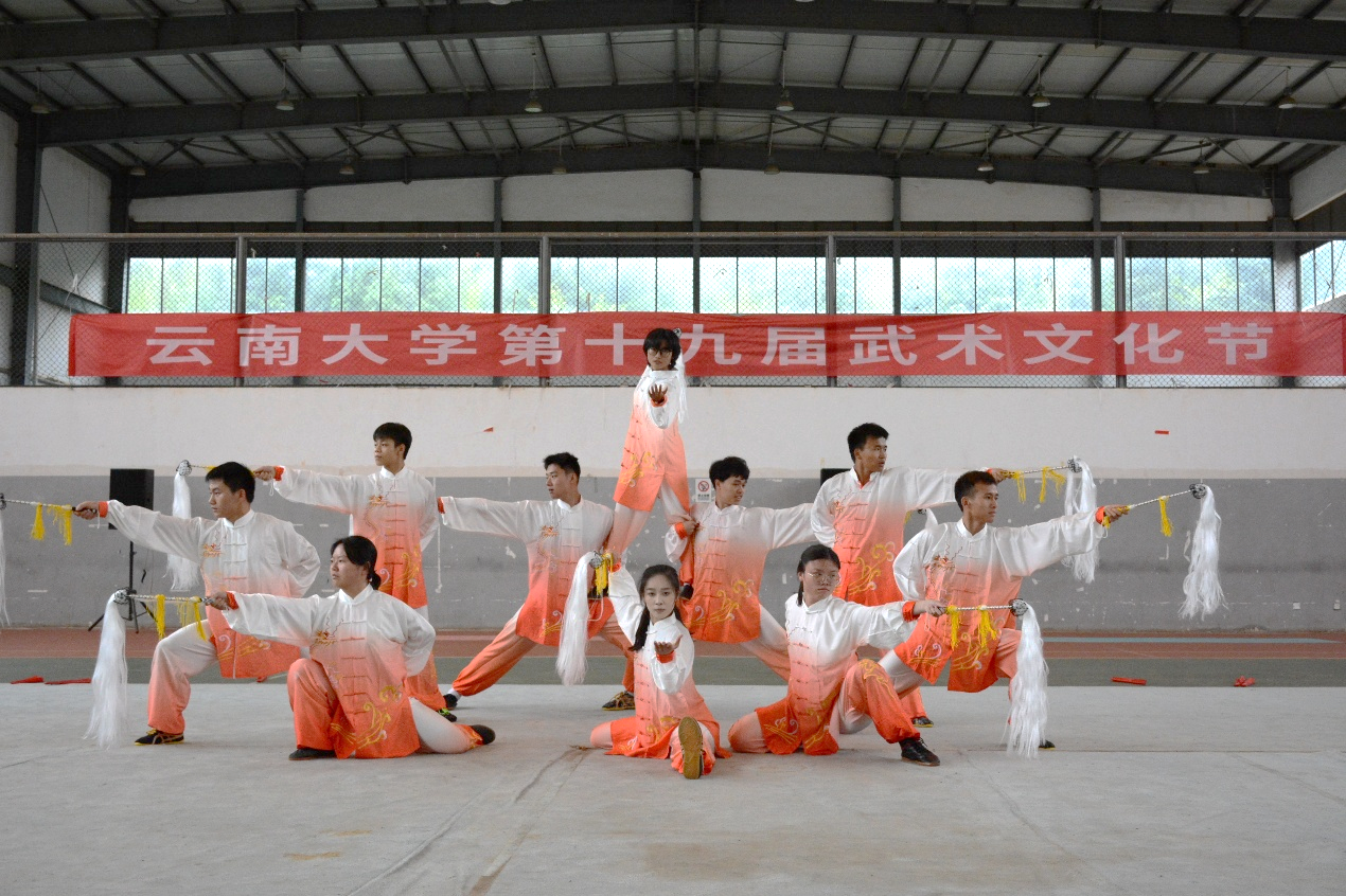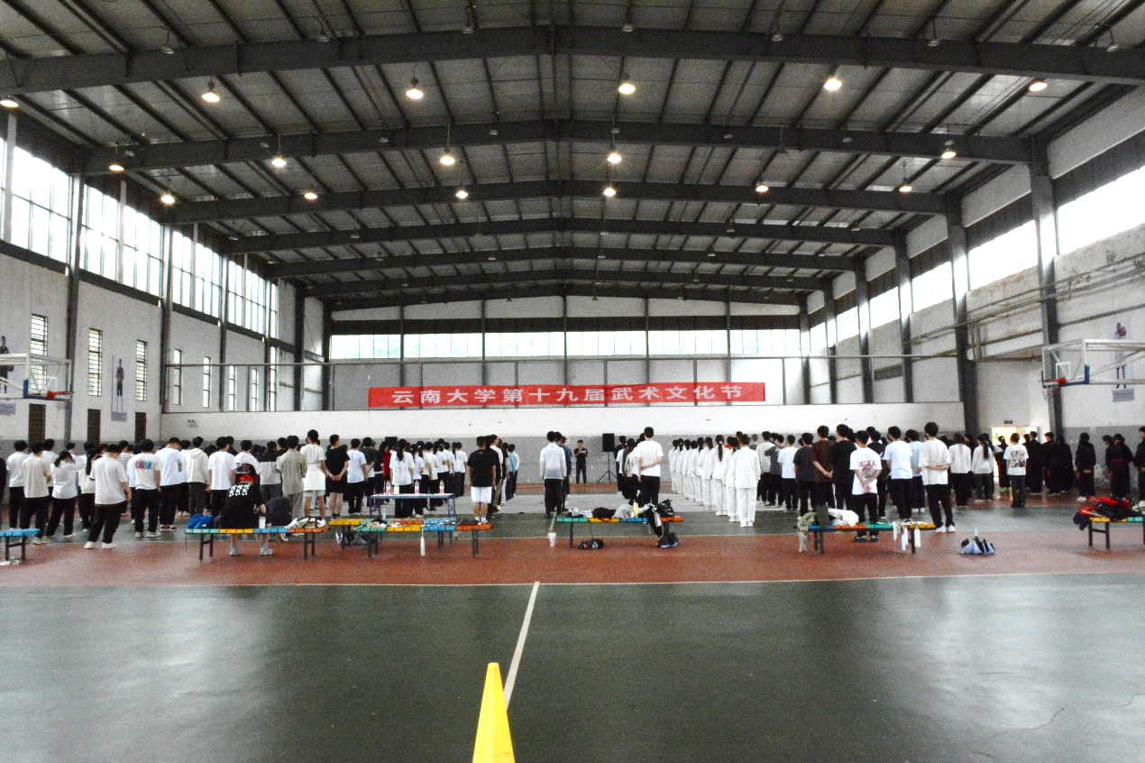 本届武术文化节以武术比赛的形式开展,邀请武术国家一级裁判、云南省武协副主席、昆明市武协副主席刘波老师和武术国家一级裁判、云南师范大学副教授李雨衡老师作为本次活动的特邀裁判,为每一支参赛队伍指导评分。近300名来自不同学院的同学们同场竞技,展示了自己一学期以来的学习成果。