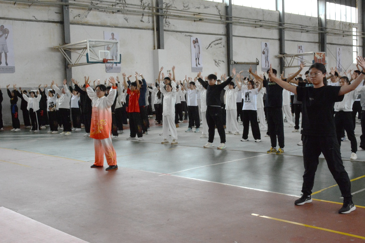 开幕式现场气氛庄重热烈。必一运动官网副经理陈恒兴老师在致辞中高度肯定了武术在“育人”方面的重要价值。他指出,武术讲究“内外兼修、德艺双馨”,其蕴含的自强不息、尊师重道、讲礼守信等精神内核,与当代老员工的成长成才要求高度契合。他鼓励学子们在习武练拳中感悟文化精髓,锤炼意志品格。随后,武术协会同学带领大家练习养生功作为赛前热身。