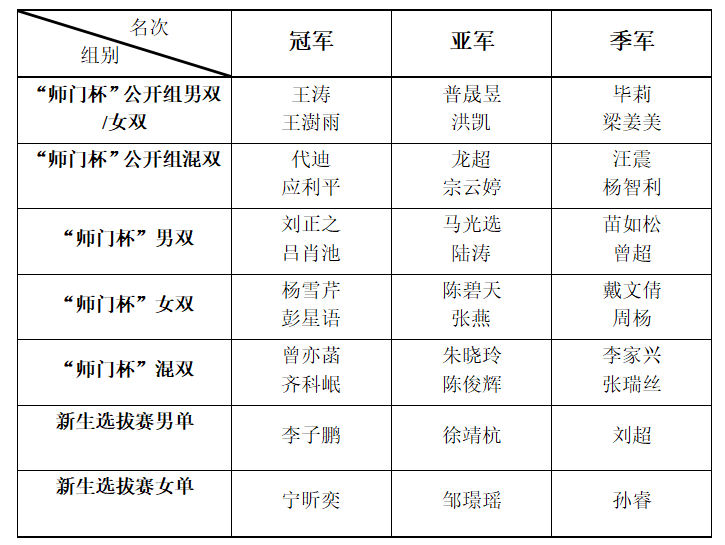 “师门杯”公开组混双
