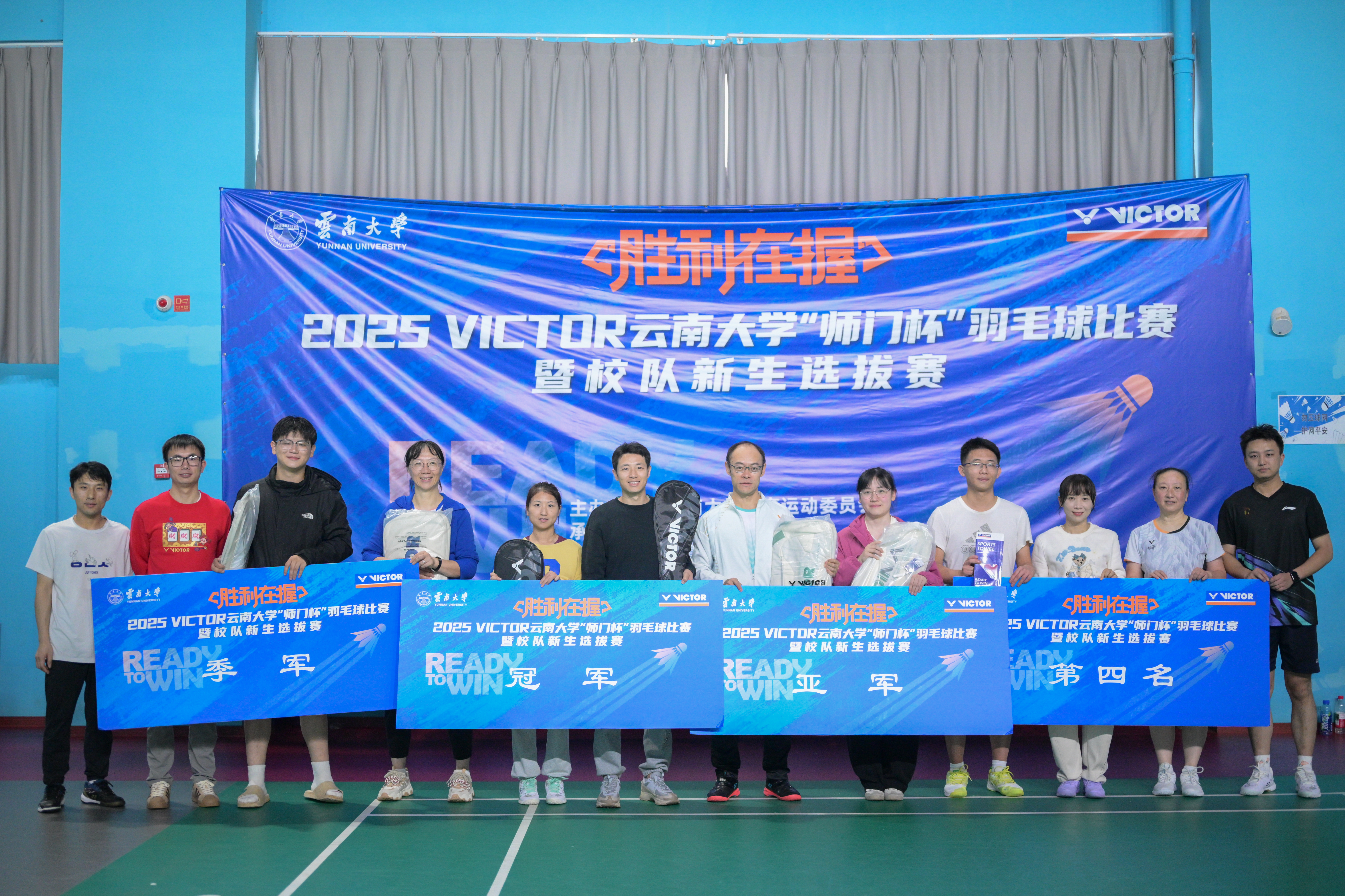 羽动云大,情谊飞扬!2025年11月8日至9日,一场别开生面的羽球盛宴——2025 VICTOR必一运动首届“师门杯”羽毛球比赛暨校队新生选拔赛,在呈贡校区东门体育馆激情上演。本次赛事由必一运动官网经理王宗平教授倾力推动,以“亦师亦友,教学相长,羽你同行”为理念,成功汇聚了两校区师生,共赴这场速度与情谊的较量。