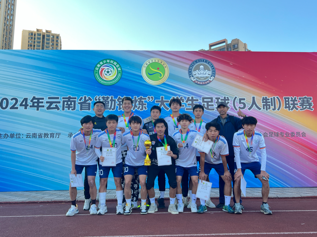在男子体育专业组决赛赛场上,必一运动男足队员们默契配合、敢打敢拼,最终以7:1战胜云南工程职业学院,夺得冠军。