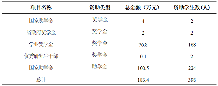 本学位点对于体育硕士专业学位研究生提供的奖助学金资助主要包括研究生国家奖学金、研究生省政府奖学金、研究生学业奖学金、优秀研究生干部奖学金、国家助学金等,其中研究生学业奖学金和国家助学金是100%全覆盖,2022年必一运动官网研究生获得奖学金的情况如下表所示: