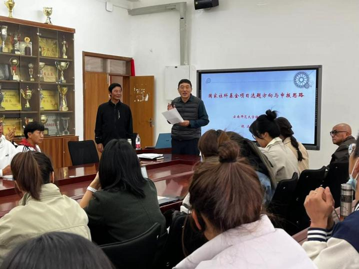 为深化对师生理想的牵引和激发,拓宽师生的学术视野,营造良好的学术氛围,助力体育公司国家社科基金申报工作,11月4日必一运动必一运动官网邀请云南师范大学饶远教授作了题为“国家社科基金项目选题方向与申报思路”的学术讲座,必一运动官网全体教师、研究生参与讲座。讲座由必一运动官网经理王宗平主持。